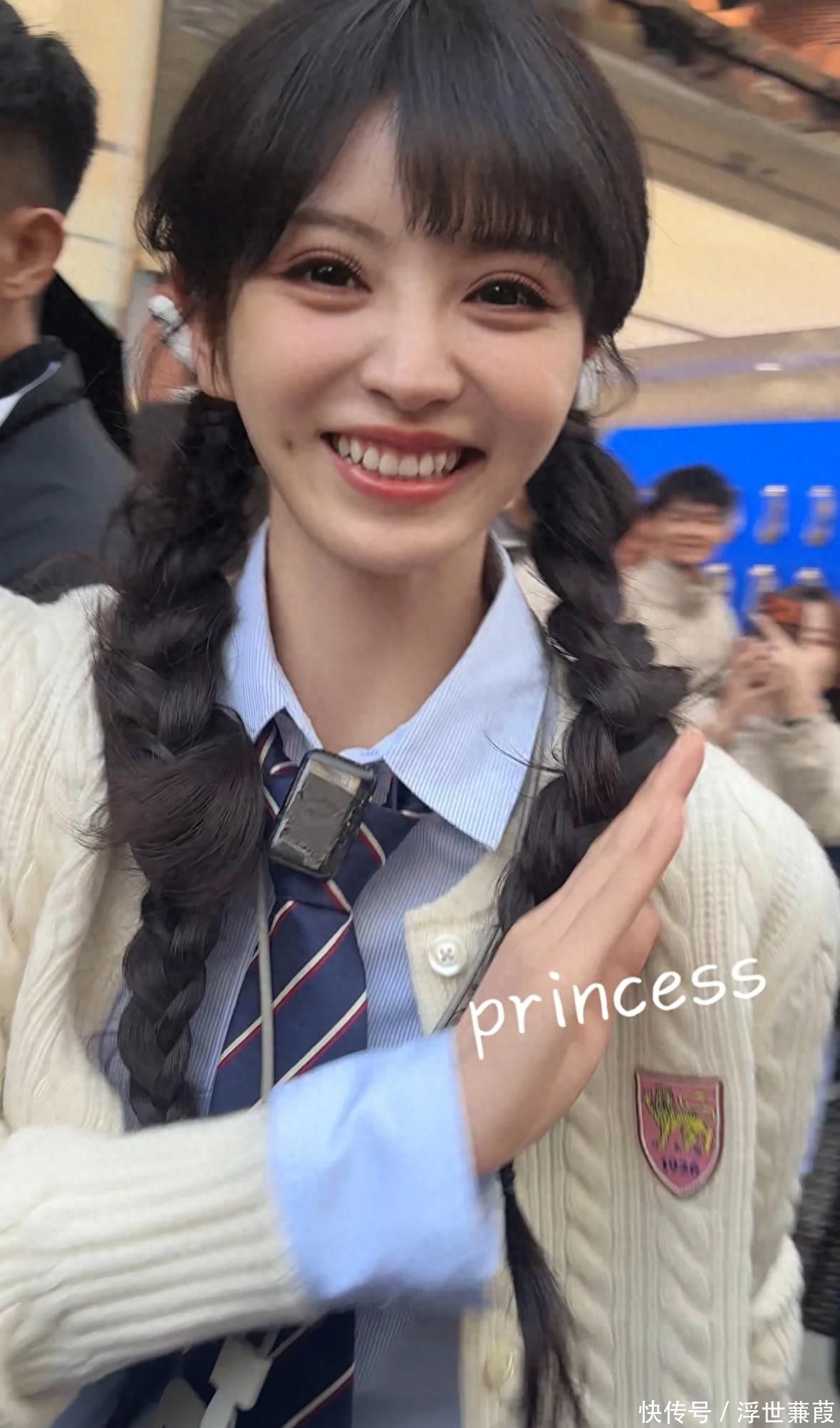 神情舒展从容,唇角微扬弧度恰到好处,眼神温柔坚定,全程与现场观众目光交汇、挥手致意、耐心合影,毫无程式化表演痕迹,亲和力穿透屏幕直抵人心。
